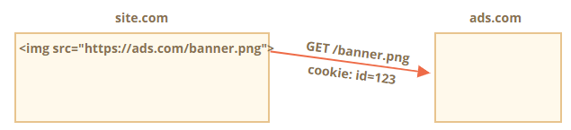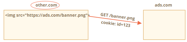2. ads.com에 있는 원격 서버는 배너와 함께 Set-Cookie 헤더를 전송해 브라우저가 id=1234와 같은 쿠키를 설정하도록 합니다. 이 쿠키는 ads.com 도메인에서 설정한 것이기 때문에 ads.com에서만 볼 수 있습니다.