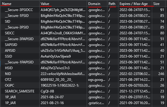 쿠키의 이름과 값엔 특별한 제약이 없기 때문에 모든 글자가 허용된다. 하지만 형식의 유효성을 일관성 있게 유지하기 위해 반드시 내장 함수 encodeURIComponent를 사용하여 이름과 값을 이스케이프 처리해 줘야 하는게 좋다.
