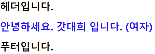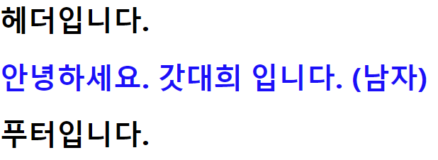 <h1 style={{color: props.color}}>안녕하세요. {props.name} 입니다.</h1>