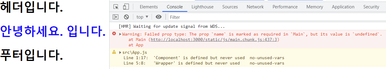 Warning: Failed prop type: The prop `name` is marked as required in `Main`, but its value is `undefined`. at 컴포넌트명