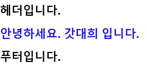 <h1 style={{color: props.color}}>안녕하세요. {props.name} 입니다.</h1>