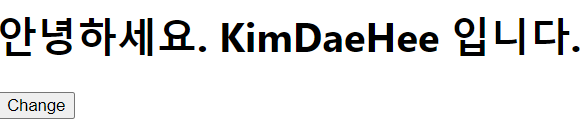 - Change 버튼을 클릭 하면 console.log에 값이 찍히는 것을 볼 수 있지만, 화면출력은 변경되지 않는다.