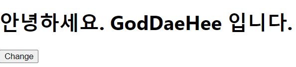 - Change 버튼을 클릭 하면 console.log에 값이 찍히는 것을 볼 수 있지만, 화면출력은 변경되지 않는다.