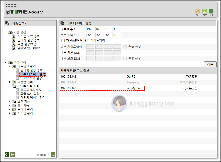 ipTIME 관리자 페이지
