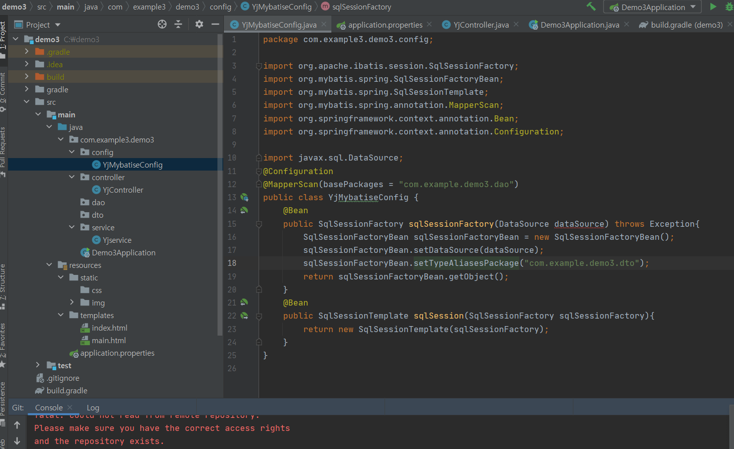 @MapperScan(basePackages = "com.example3.demo3.dao" , sqlSessionFactoryRef = "SqlSessionFactory")