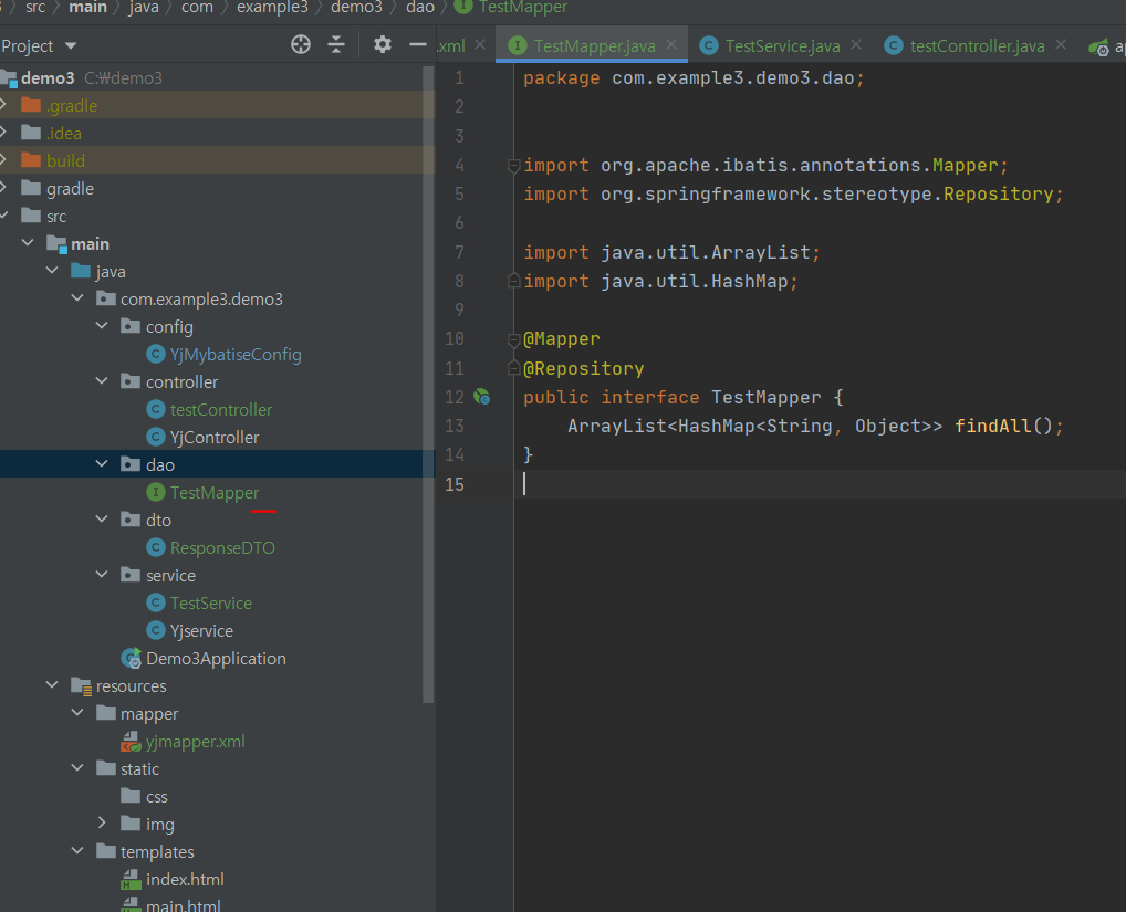<mapper namespace="com.example3.demo3.dao.TestMapper">