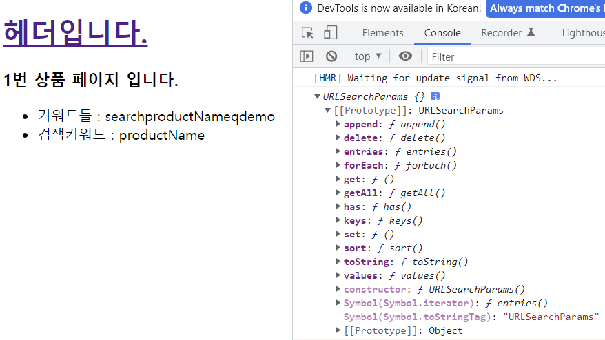 쿼리스트링 : /product?product=1&searchKeyword=productName