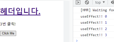 - 클릭시 cleanup 함수에서는 이전 count값, 그리고 렌더링 이후 변경된 count값이 찍히는 것을 볼 수 있다.