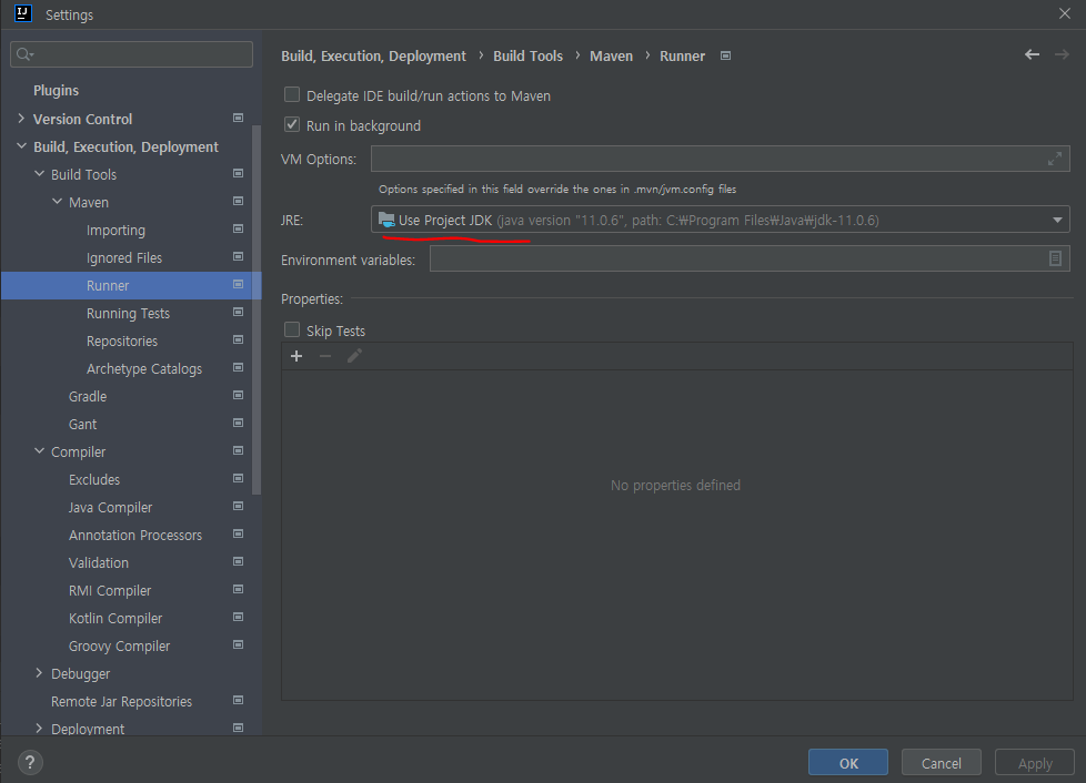만약, 인텔리제이의 vmOptions를 사용자 정의해서 쓰는 경우 인텔리제이 버전에 따라 구동되는 JDK가 달라지므로 사용할 수 없는 옵션이 있으면 실행이 되지 않습니다.