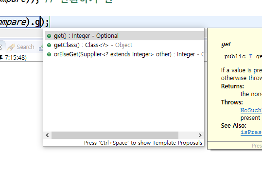 System.out.println(list.stream().max(Integer::compare)); // 반환하기 전