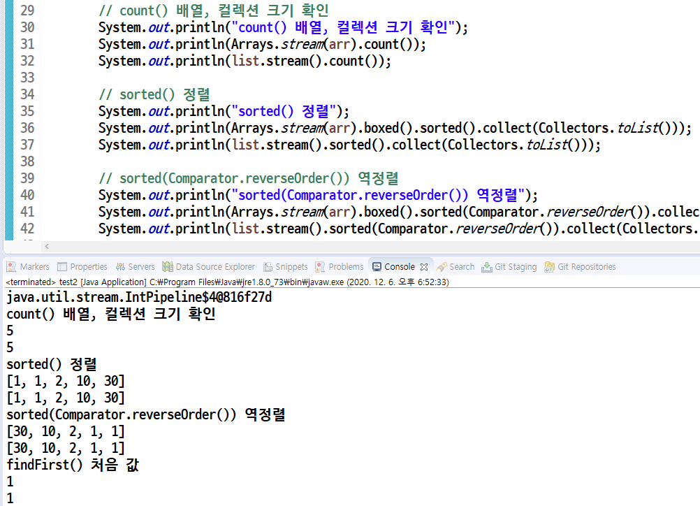 int val2 = list.stream().max(Integer::compare).get(); // 값 하나 반환