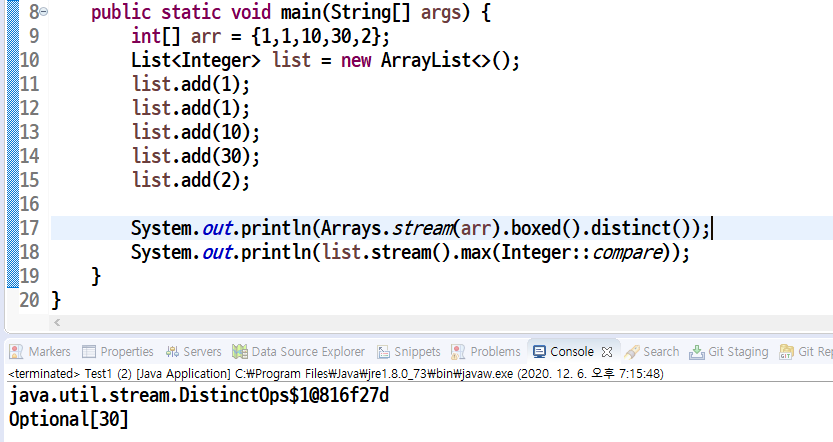 System.out.println(list.stream().max(Integer::compare)); // 반환하기 전