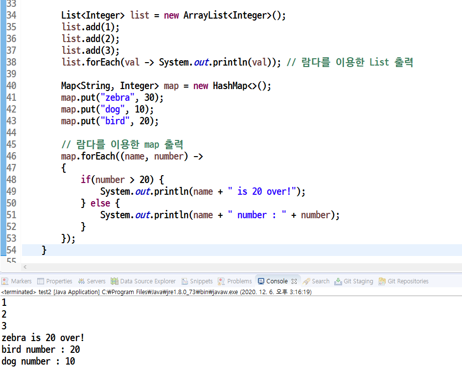 list.forEach(val -> System.out.println(val)); // 람다를 이용한 List 출력