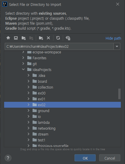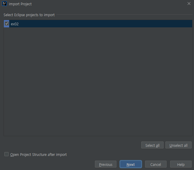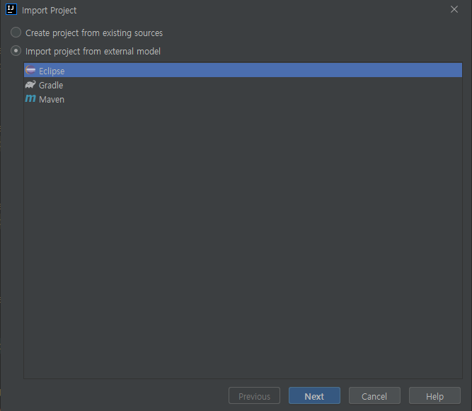 인텔리제이에서 이클립스 프로젝트 import를 하려한다.