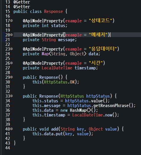 그러기 위해선 응답되는 객체의 필드에 @ApiModelProperty 어노테이션으로 해당 필드가 어떤의미인지 적을수 있다.