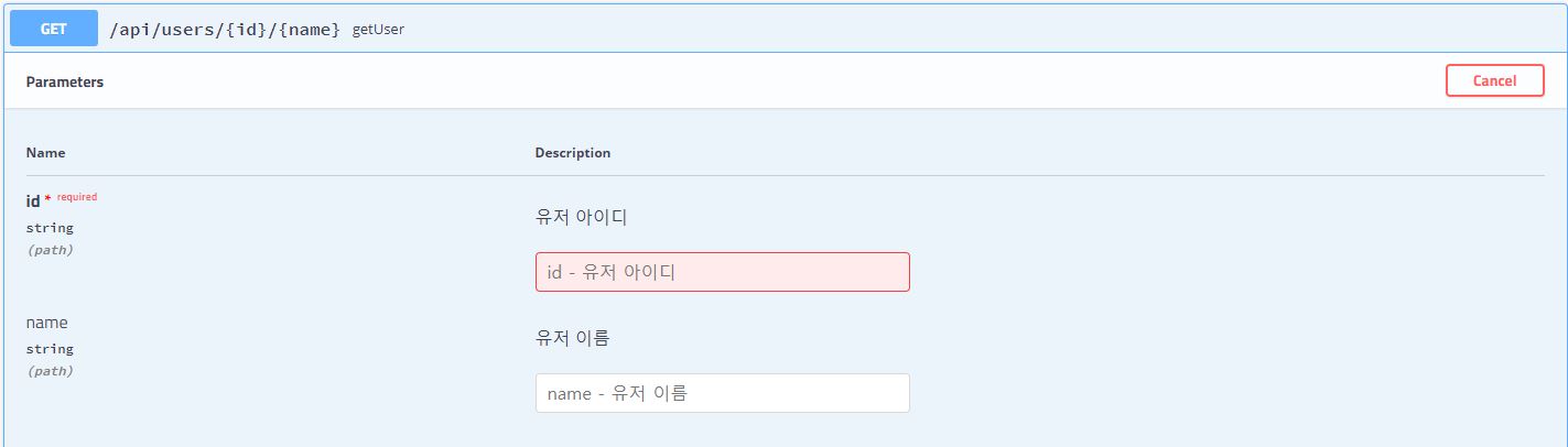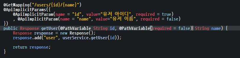 주의할 점은 ApiImplicitParam 어노테이션으로 required = false를 지정했다고 해서 @PathVariable 어노테이션에도