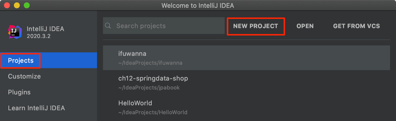 1. 이번 예제에서는 프로젝트내 모듈로 스프링부트 Application을 올려보도록 하겠습니다. 인텔리제이를 실행하시고 Projects > NEW PROJECT를 눌러주세요.