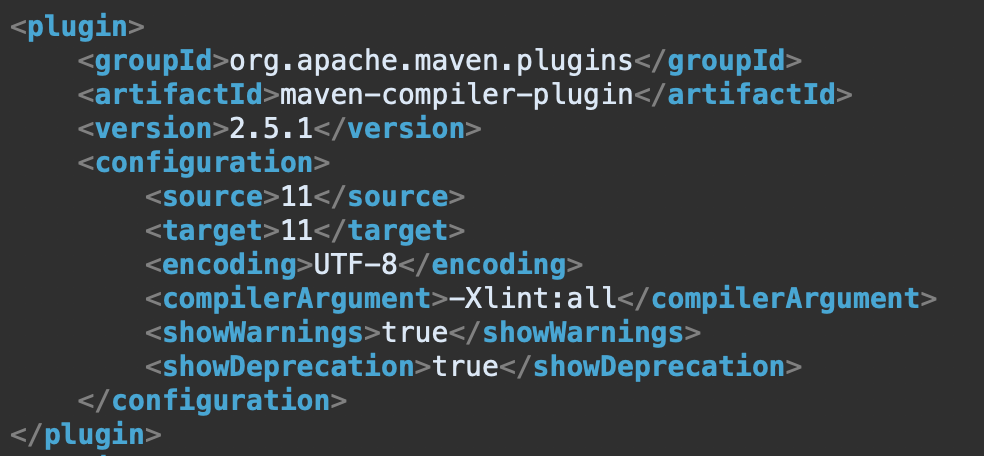 하지만, 프로젝트의 pom.xml에 명시된 maven complier 버전은 2.5.1 로 되어 있었습니다.