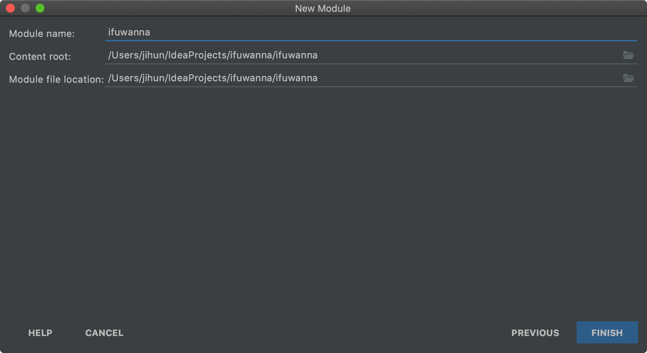 7. 마지막으로 Module의 이름과 root 경로를 지정해 주세요.