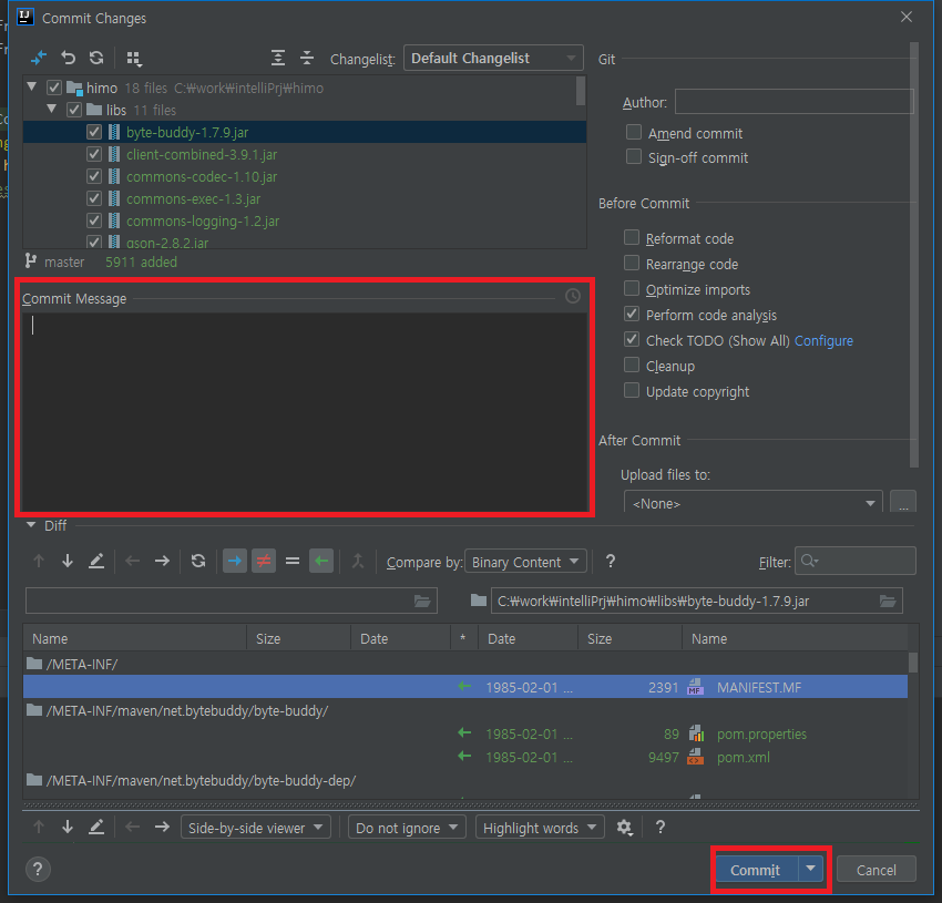 - Project폴더에서 마우스 우클릭 >> Git >> Commit Directory