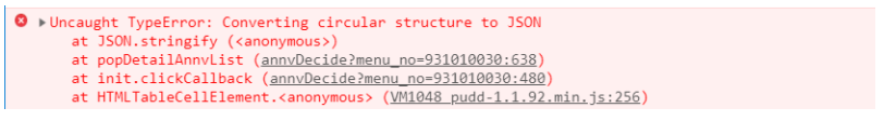해석하자면, 선회하는 구조를 JSON으로 바꾸려고 해서 나는 에러.