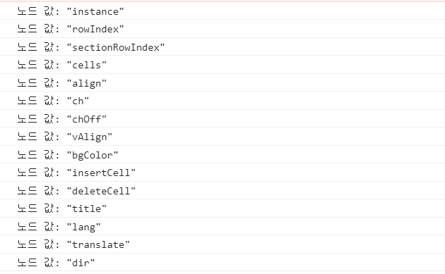 // 에러가 나는 객체가 trNode라고 한다면, for (output in trNode){ console.log("노드 값: "+JSON.stringify(output)) } Colored by Color Scripter |