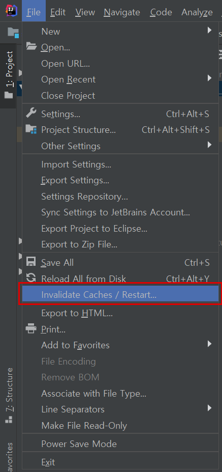 File - Invalidate Caches / Restart... 클릭