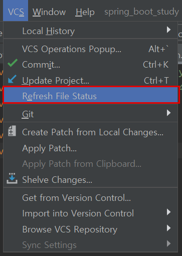 프로젝트 루트를 선택한 상태에서 VCS - Refresh File Status를 클릭한다.