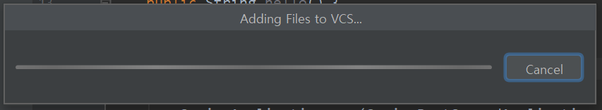 Adding Files to VCS... 파일을 Git에 add하던 중 멈춘 화면