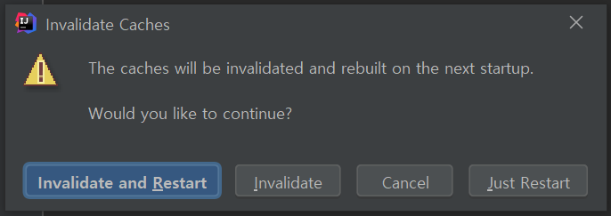 Invalidate and Restart 클릭