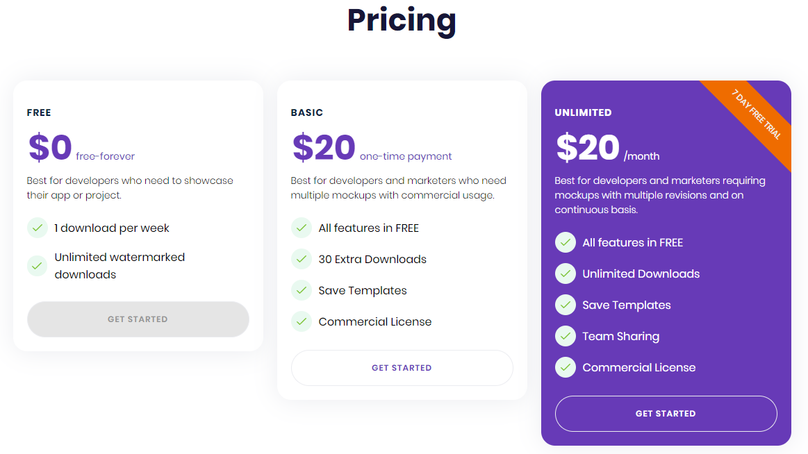 - 2020년 12월 현재: 무료요금제가 매주 1회 무료다운로드 및 이후 워터마크가 붙은 이미지를 무제한으로 다운로드하는 방식으로 변경되고 10$짜리 Starter 요금제가 없어졌습니다.