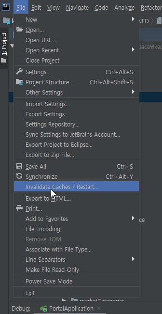 File - Invalidate Caches / Restart 클릭