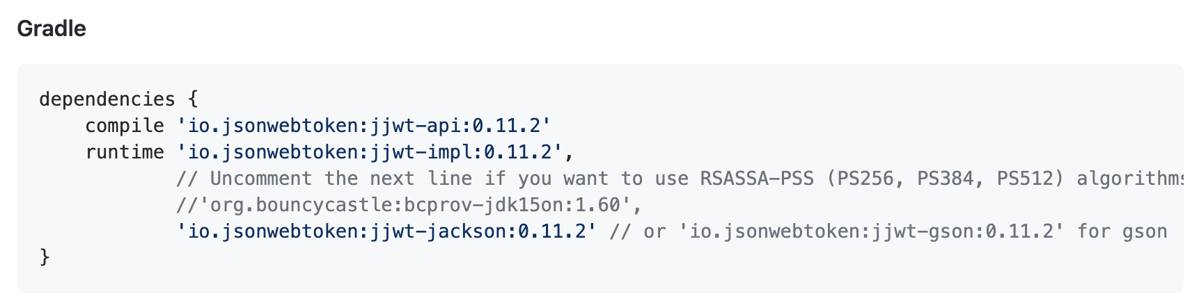 compile 'io.jsonwebtoken:jjwt-gson:0.10.7'