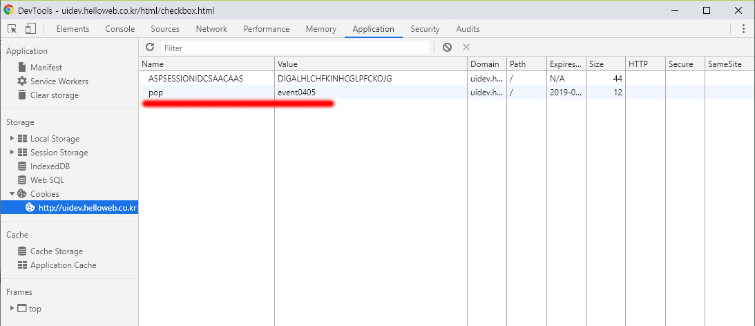 단, 쿠키 요소를 삭제할때 반드시 path를 맞춰야 한다.삭제가 안된다면, 개발자도구에서 쿠키path를 필히 확인 해 볼것