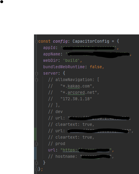 Capacitor 는 연결 url CapacitorConfig 에서 설정