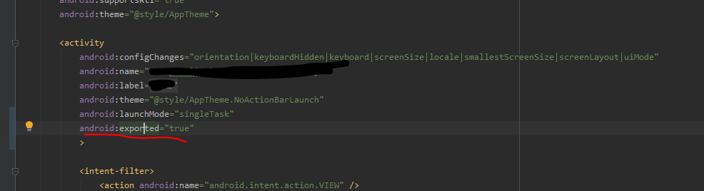 targetSdkVersion 을 맞춰주고 IntentFilter의 exported 명시적 선언 이 필요하다고 해서