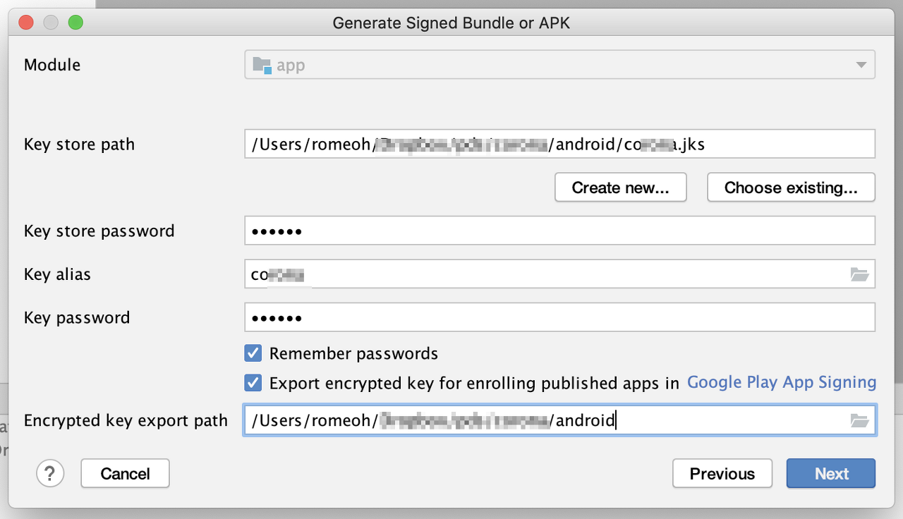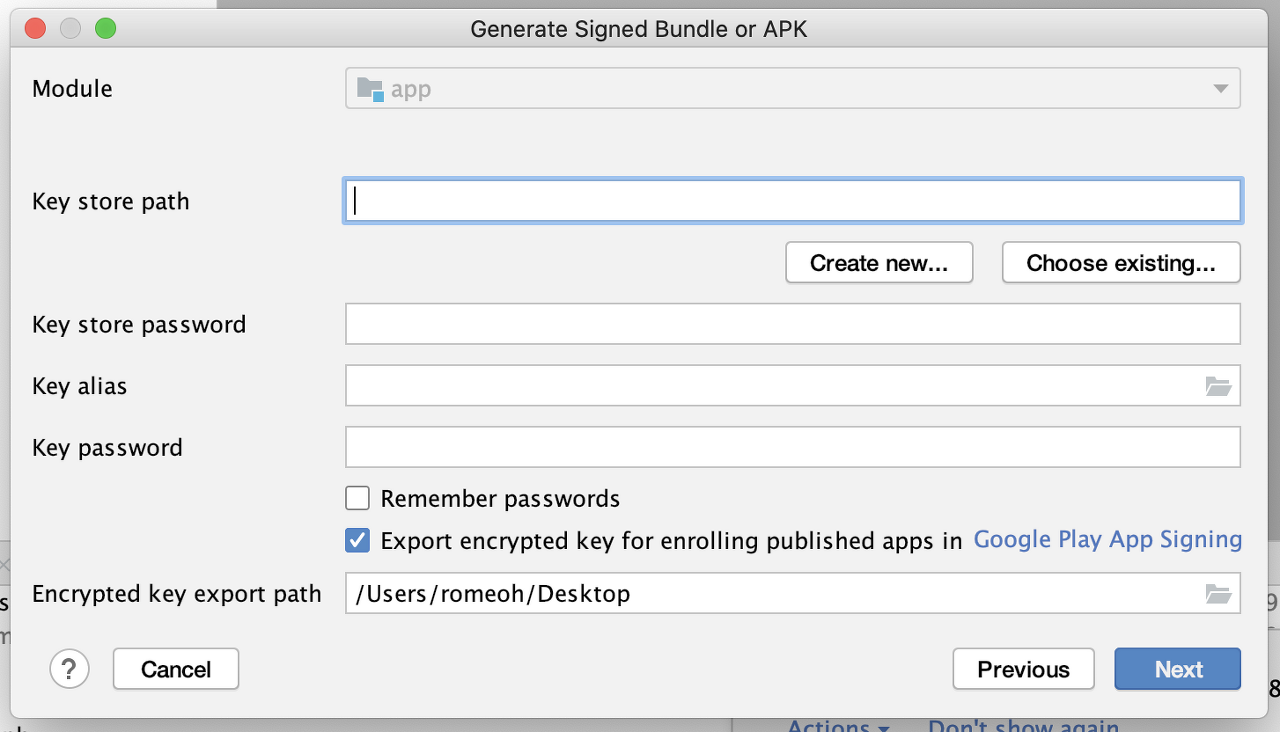 Android App Bundle을 선택하면 app.aab 파일이 생성됩니다.