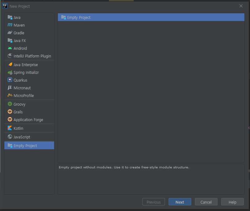 3. 프로젝트 구조가 이상함 1번에서 emptymodules -> Spring Initializr 탭으로 다시만듬