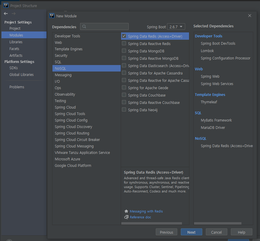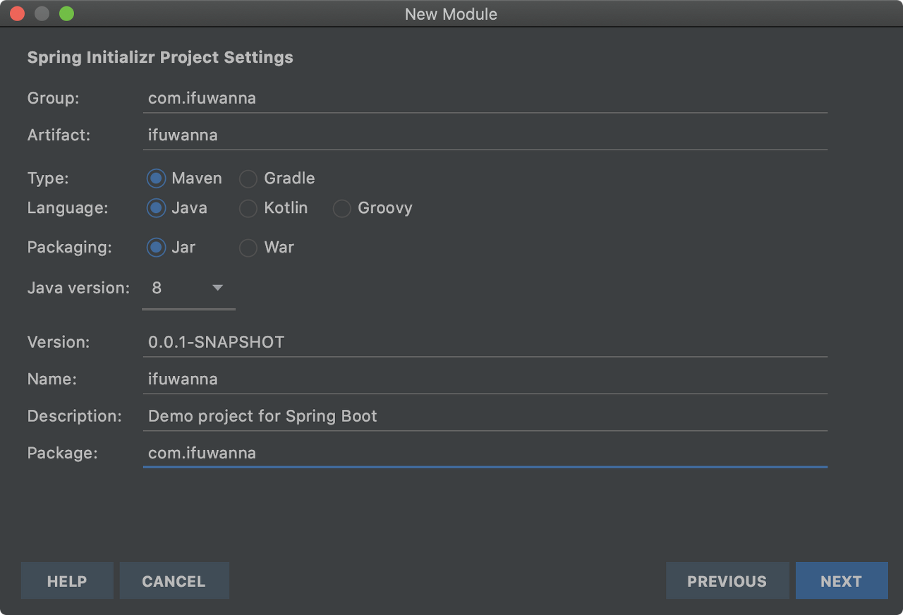 2. modules + 에서 new module Spring Initializr 에서 기본 설정