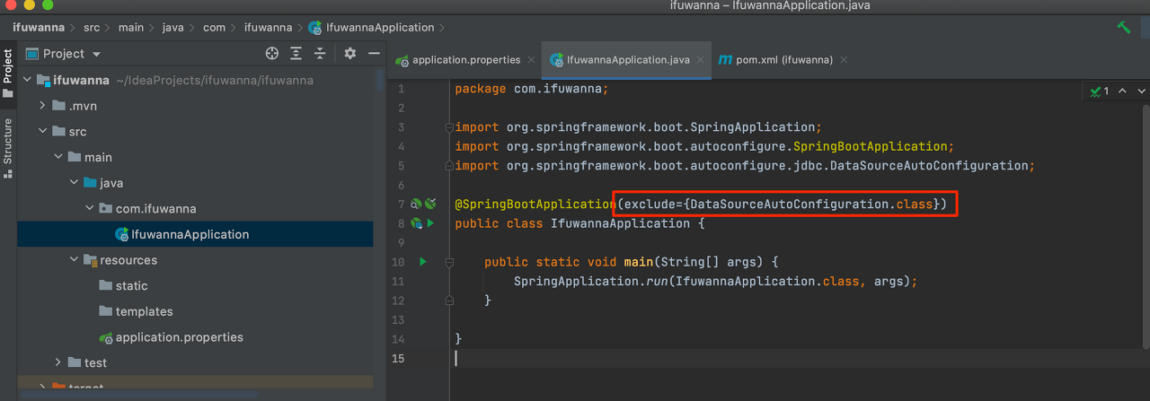 @SpringBootApplication(exclude={DataSourceAutoConfiguration.class})
